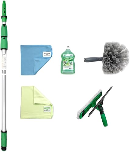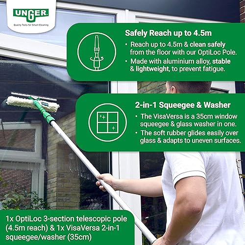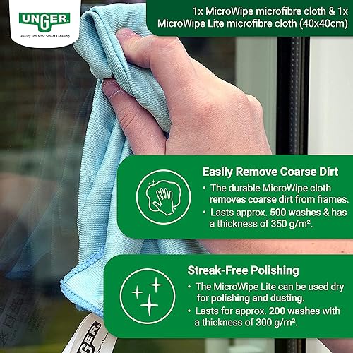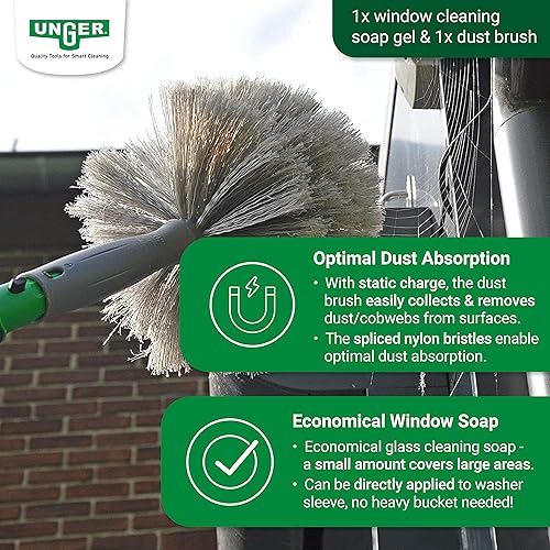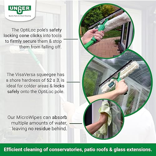 UNGER AK130 Kit de Nettoyage pour Jardin d'hiver (avec détergent, raclette pour vitres, Barre d'extension, Chiffons en Microfibre, Nettoyage sans Traces)