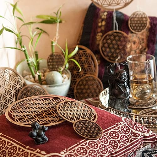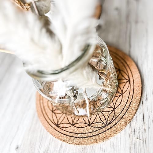 Spruchreif Premium QUALITÄT 100% Emotional - sous-Verre en liège Fleur de Vie - Ensemble sous-Verre 6 - sous-Verre en Verre Fleur de Vie - Symbole Spirituel - Cadeaux ésotérisme