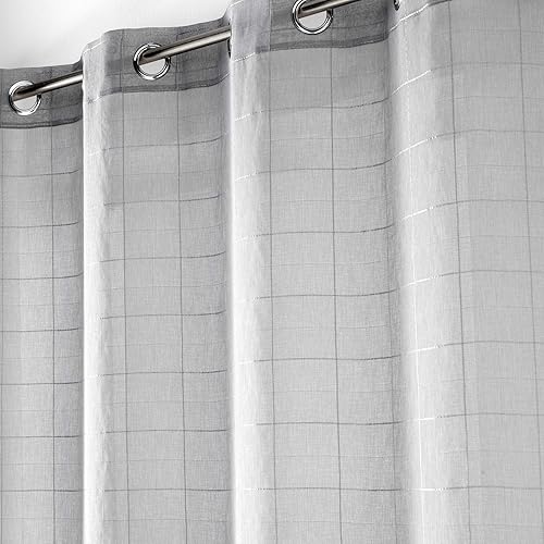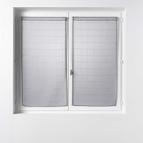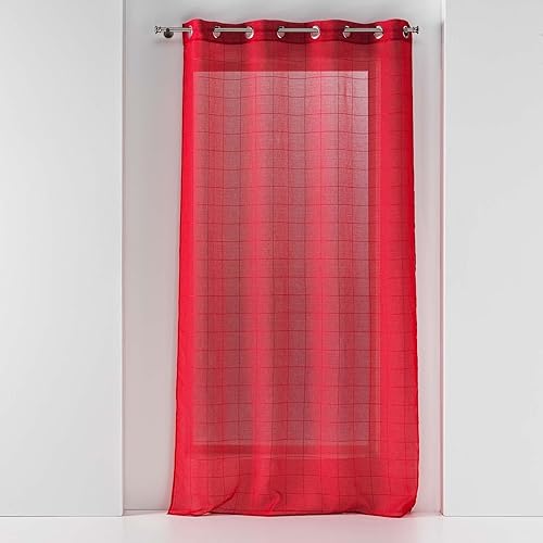 Douceur d'Intérieur, Paire de Voilage Droite Passe Tringle 2 x 60 x 90 cm Voile Sablé Fantaisie, Eulalie Rouge