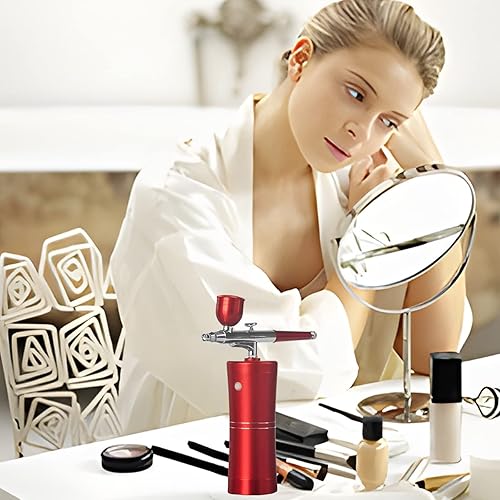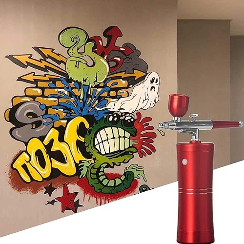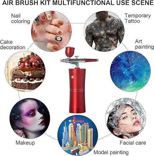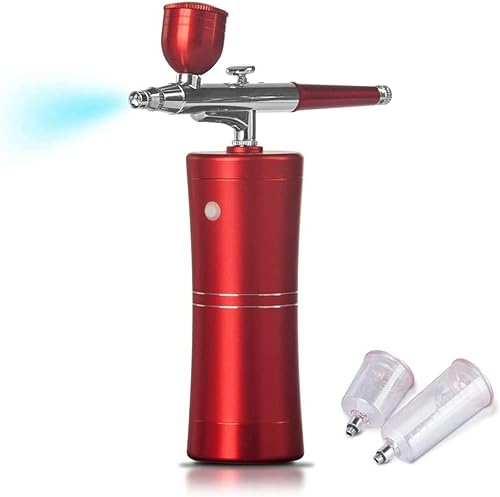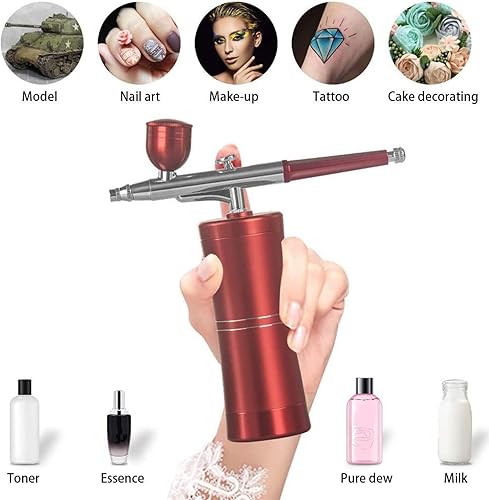 Joyeee aerographe, portatif rechargeable Haute précision Double Action compresseur réglable pour modélisme, gâteau, créations Artisanales, Tatouage, Maquillage, Peinture et manucure, rouge foncé