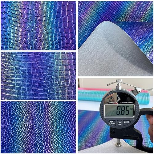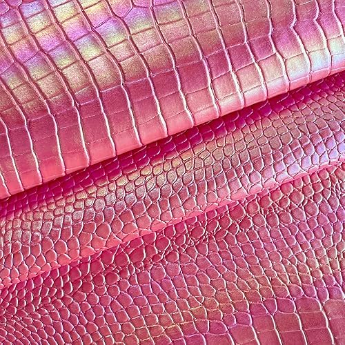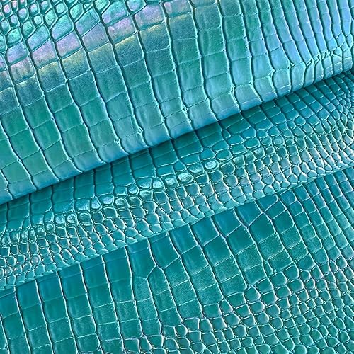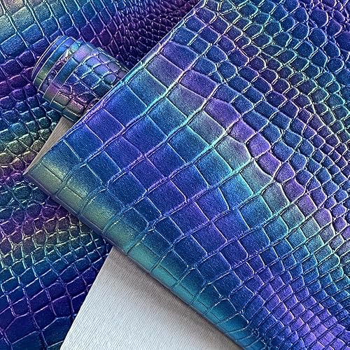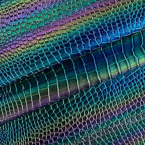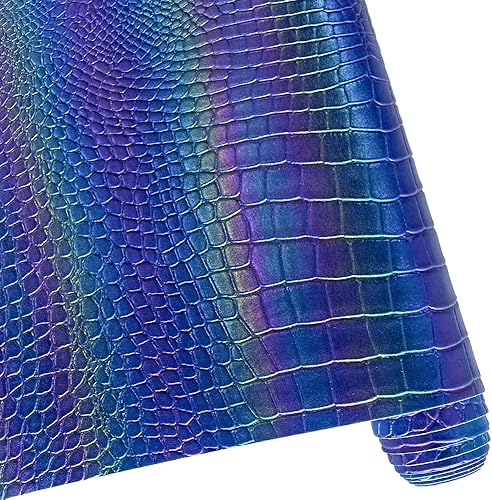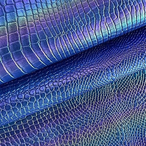Tissu en cuir synthétique irisé 40 × 135 cm gaufré grain crocodile pour boucles d'oreilles, sac, nœuds, bricolage (bleu)