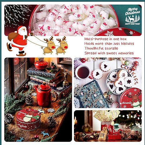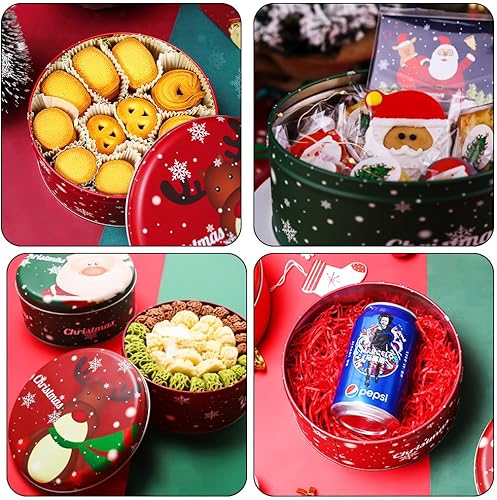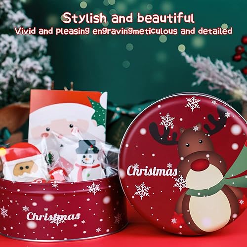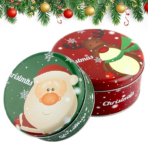 Taozoey Boîtes à Biscuits/Bonbons de Noël Rondes en Métal, Lot de 2, avec Couvercle