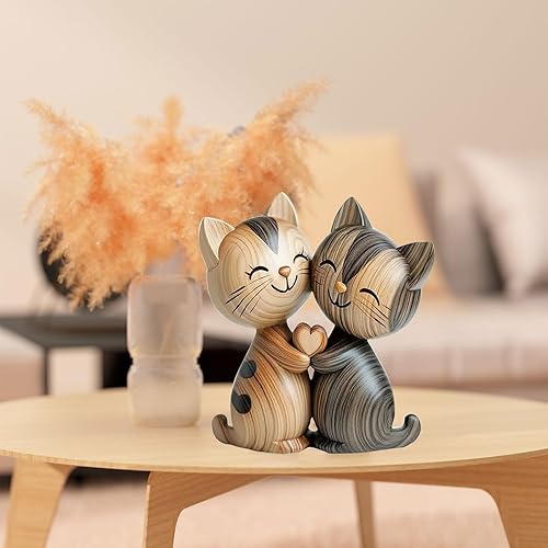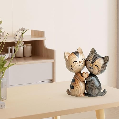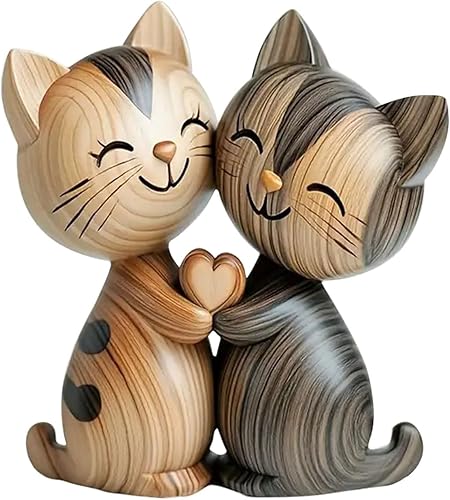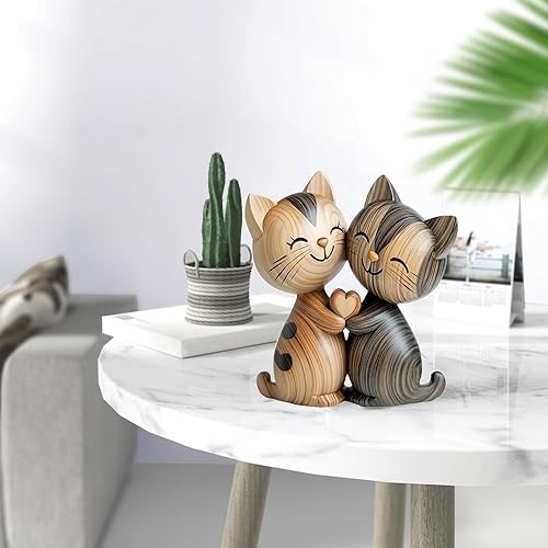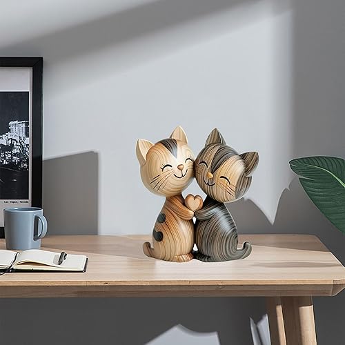 LunarCharm Sculpture en Bois d'un Couple de Chats – Décoration de Bureau en 2D Plate avec câlin, décoration pour Maison et Bureau, Cadeau Unique pour Amoureux des Chats