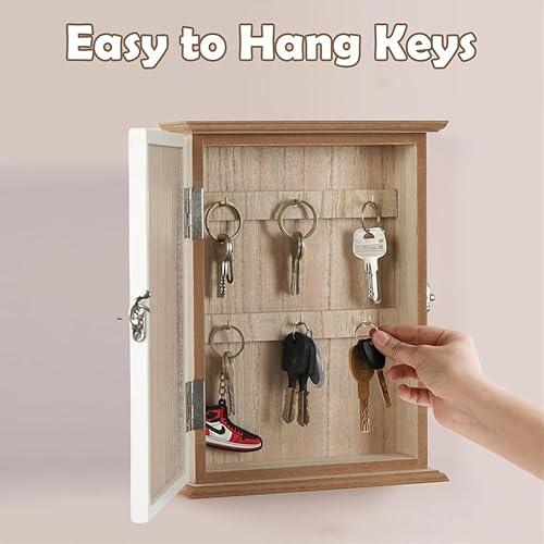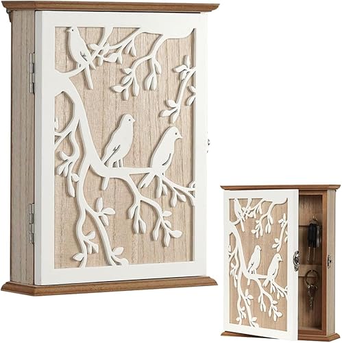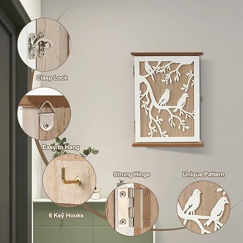 Armoire à clés en bois - 6 crochets à clés - Avec étagère à clés géométrique - Organiseur mural pour entrée, couloir, bureau - Décoration ethnique - 26,5 cm