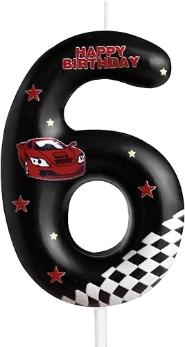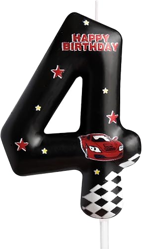 Bougies d'anniversaire en forme de voitures de course en forme de numéro 4 - Noir - Thème de la circulation - Pour fille et garçon - Décoration de gâteau d'anniversaire