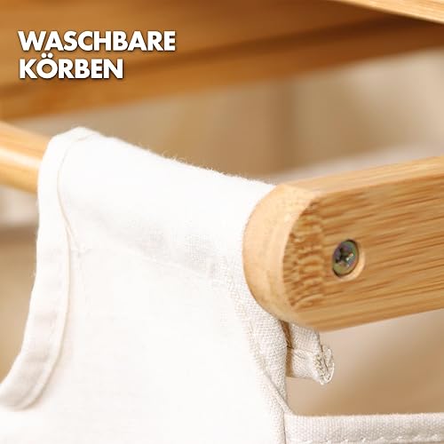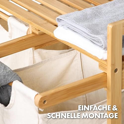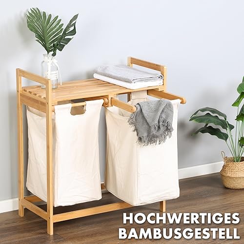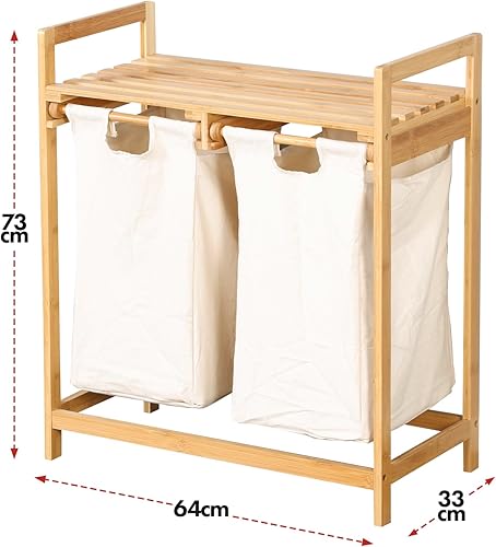 Floordirekt Panier à linge en bambou avec 2 compartiments, panier à linge pour linge sale, avec grand panier à linge (Dakota) (64 L x 33 l x 73 H)