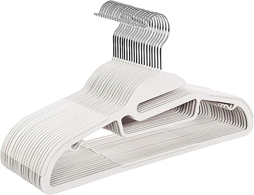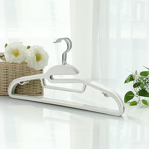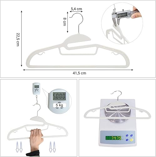 SONGMICS Lot de 20 cintres antidérapants en Plastique de qualité supérieure, Fins et résistants pour Adulte Épaisseur 0,5 cm Largeur 41,5 cm Blanc CRP41W