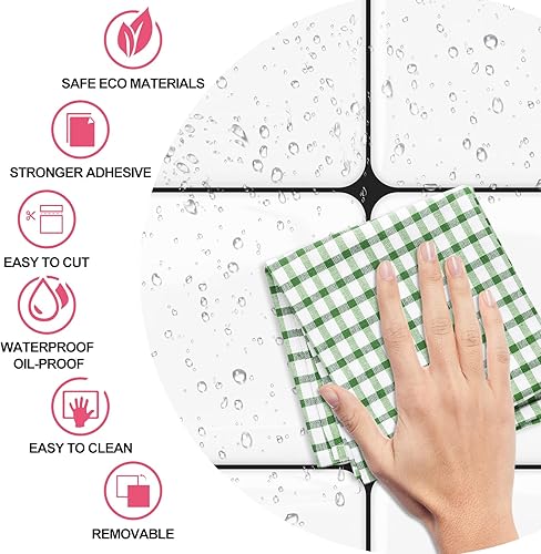 EasyLife Lot de 10 autocollants muraux blancs style grille pour décoration de la maison, 20 x 20 cm, autocollants pour carrelage de cuisine et de salle de bain