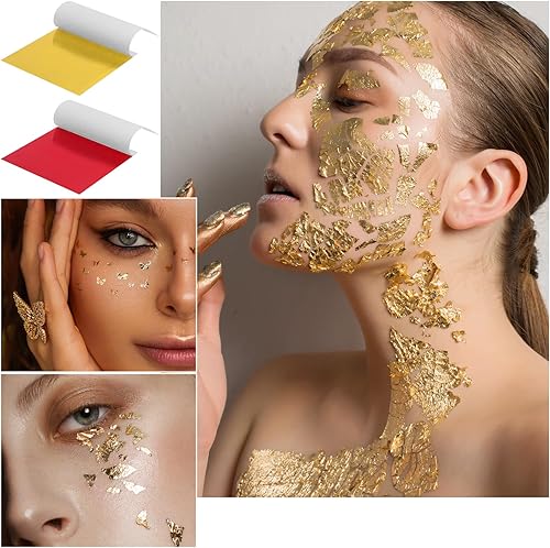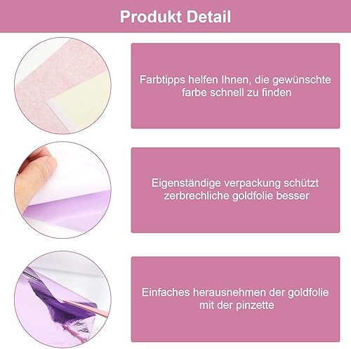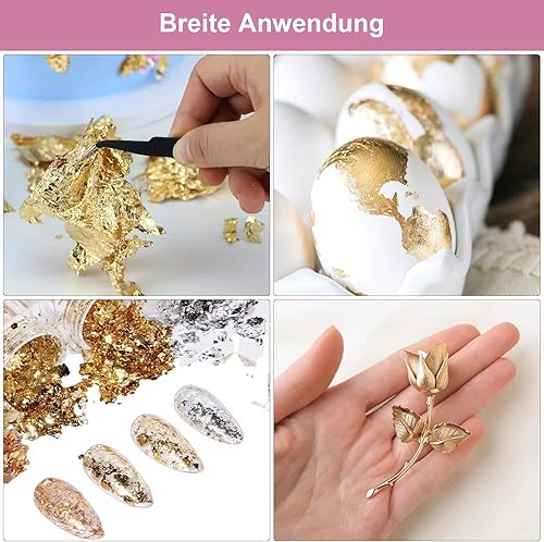 APOMOONS 120 Feuilles Imitation Feuille d'or 12 Couleurs 8.5 X 8 cm avec Pince à épiler Feuille d'or pour Décoration de Meubles Décoration Ongles Nail Art Création DIY