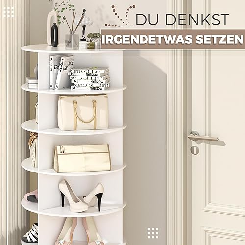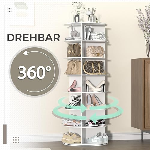 HIZH Étagère à chaussures rotative blanche - Carrousel à chaussures rond à 7 niveaux - Armoire à chaussures verticale rotative à 360° - Pour jusqu'à 21 paires de chaussures