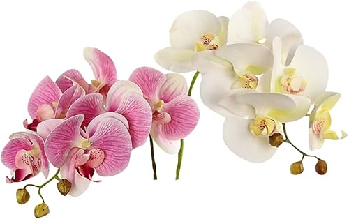 Lot de 2 Fleurs artificielles phalaenopsis avec tiges de Fleurs d'orchidée artificielles pour Terrarium