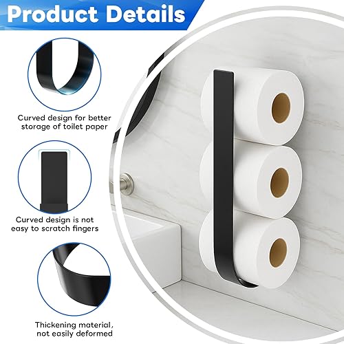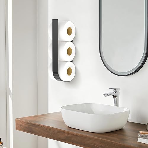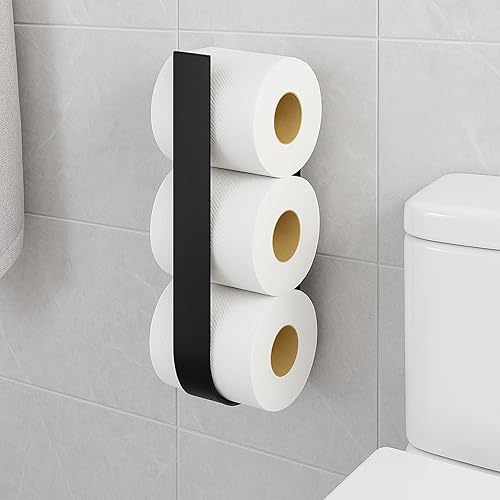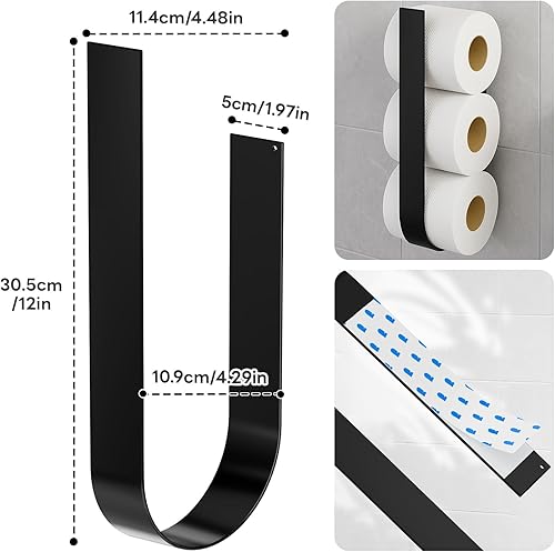 Toilettenpapierhalter Ohne Bohren, Klopapier Aufbewahrung, Klorollenhalter Schwarz, Toilet Paper Holder Papier Aufbewahrung für 3 Rollen, Ersatzrollenhalter Toilettenpapier