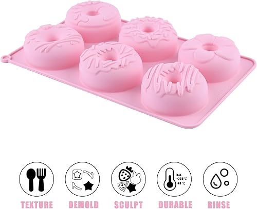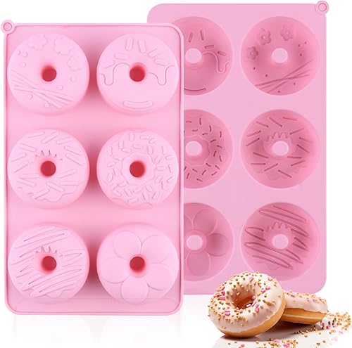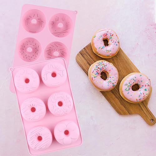 Lot de 2 grands moules à donuts en silicone anti-adhésif pour faire des beignets - Rose