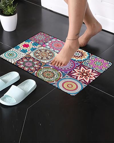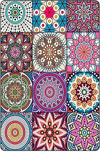 AORHOFJ 1 Tapis de style ethnique, tapis de sol de salon style vintage persan, tapis de chambre d'hôte, tapis de porte d'entrée bohémien, tapis floral de salon, tapis doux et lavable (50 * 80cm)