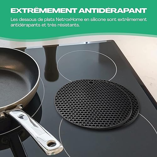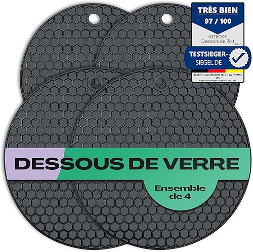Netrox - Set de 4 Dessous de Plat en Silicone - résistants à la Chaleur, lavables au Lave-Vaisselle et antidérapants - Tapis de Table résistant à la Chaleur pour Les casseroles et poêles Chaudes