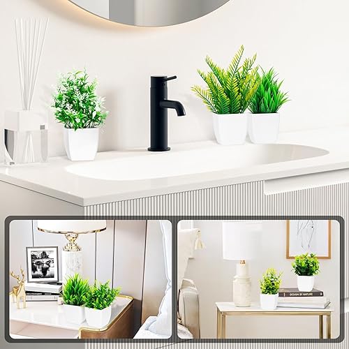 BBWELL 6 Pièces Plantes Artificielles,Mini Fleurs Artificielles en Pot,Fausse Plante Interieur au Design Naturel,Pot Verdure Artificielle en Plastique pour Bureau Salon Chambre Salle De Bain