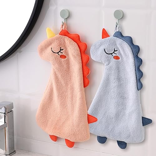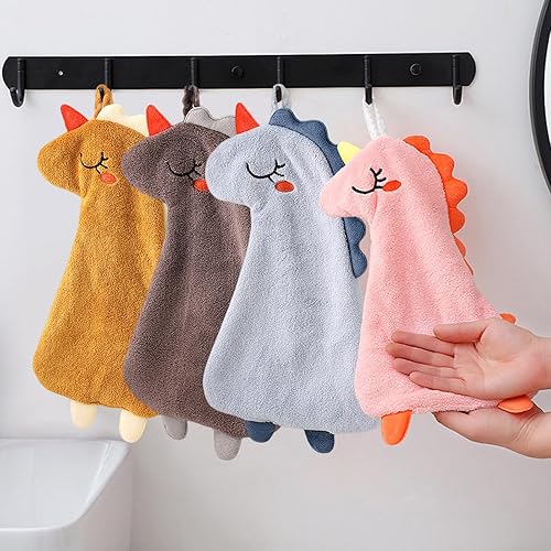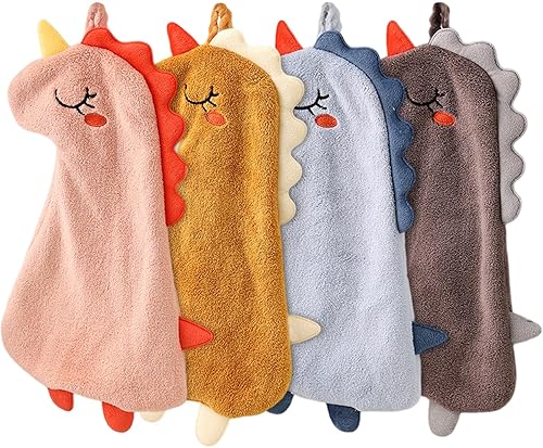 Qixuer 4 Pièces Serviettes pour Enfant,Serviette de Toilette Enfant Essuie-Mains Suspendu Débarbouillette Animaux Serviettes à Main Mignonnes Absorbantes en Microfibre Serviettes de Visage