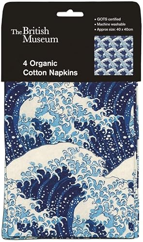 Hokusai Lot de 4 serviettes en tissu en coton bio Motif The Great Wave by Hokusai British Museum Design Vaisselle réutilisable
