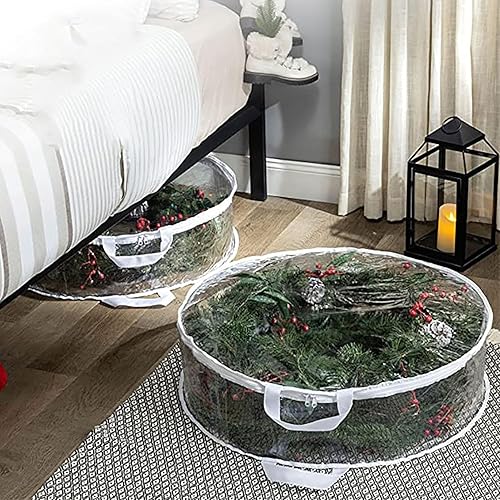 Teksome Sac de Rangement Transparent pour couronnes de Noël - Boîtes Rondes pour décorations de Noël