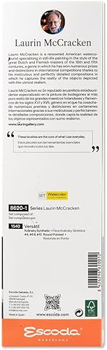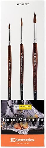 ESCODA Lot de 3 pinceaux Aquarelle - N° 4, n° 6, n° 10 - Poils synthétiques Ronds Pointus - Set de Versàtil Laurin Mccracken série Fibra Versàtil - Fabriqué à la Main à Barcelone.