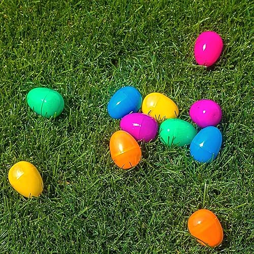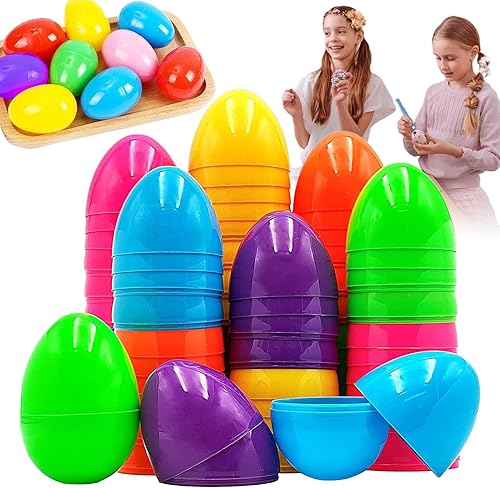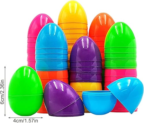 Oeufs de Pâques Vides, Lot de 50 Oeufs en Plastique Colorés À Remplir, Oeufs de Pâques Faux Œufs Couleurs Assorties pour La Chasse Aux Œufs de Pâques, Oeufs en Plastique Suspendus avec Corde