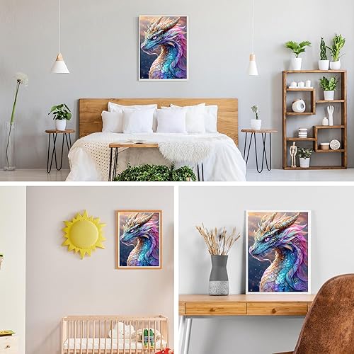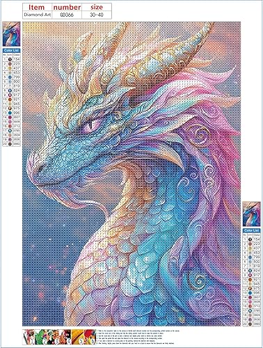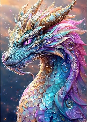 GDYEEH 5D Dragon Coloré Peinture Diamant Painting Kit, DIY Dragon Art du Diamant Complet Kits, Fantaisie Diamond Art Kits Strass Point de Croix Painting pour Adultes Débutants Maison Décor 30x40 cm