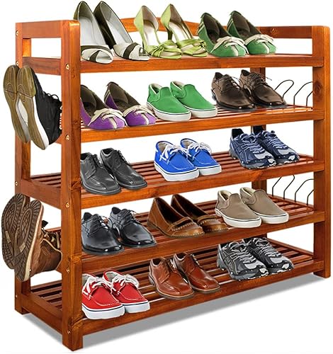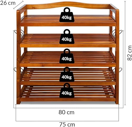 Casaria® Étagère à Chaussures 5 Niveaux Meuble de Rangement en Bois d'acacia 82x95x26cm entrée Salon Salle de Bain