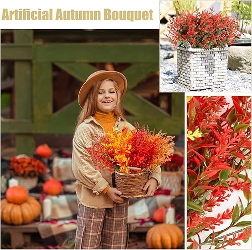 EnixwH 10 Bouquet Automne Artificielle Fleur Automne Bouquet De Fleurs Artificielles Deco Fleurs d'automne Artificielles Qui Ne Se Décolorent, Decoration Automne pour Intérieur et Extérieur
