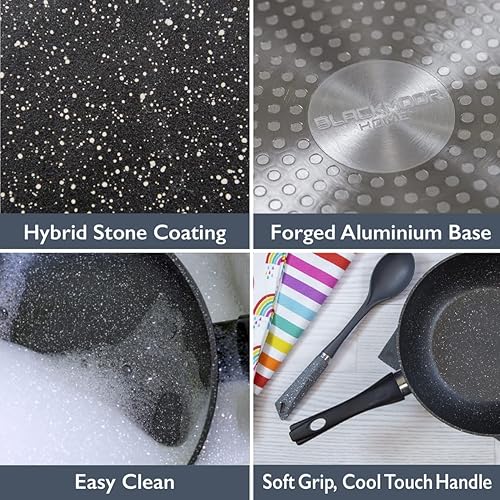Blackmoor Home Poêle adhésive Anti-Rayures de 24 cm 67070, Noir, 24cm