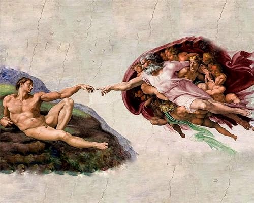 YEESAM ART Peinture Numero Création d'Adam par Michel-Ange, Bricolage Peinture par Numero 40x50 cm Acrylique Decoration Murale (Genèse, sans cadre)