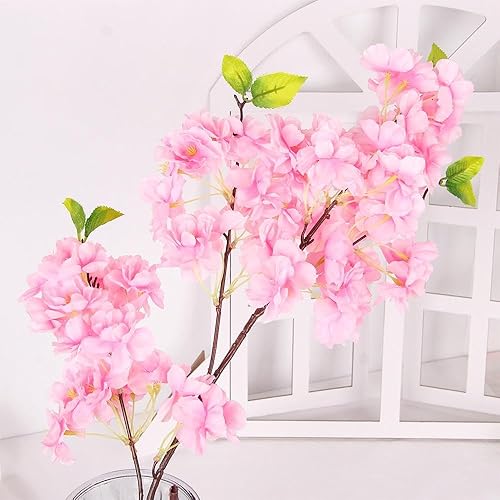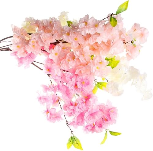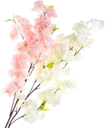 Fleurs de cerisier artificielles en soie, 4 branches de table artificielles en soie, décoration de mariage (blanc)