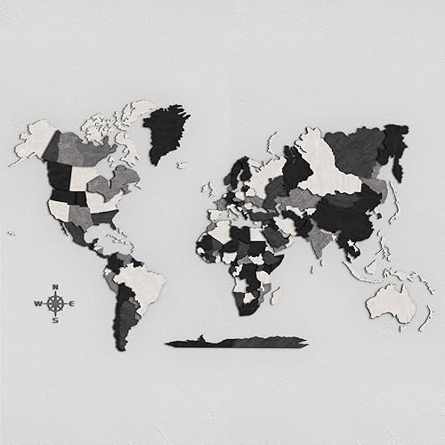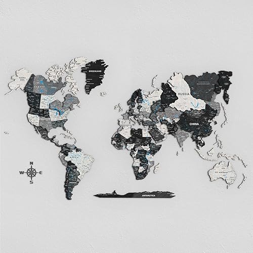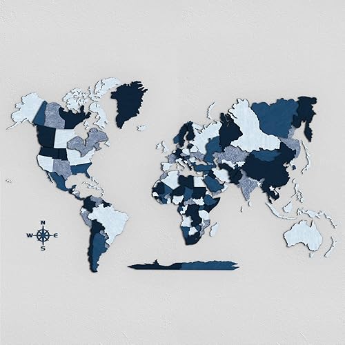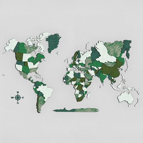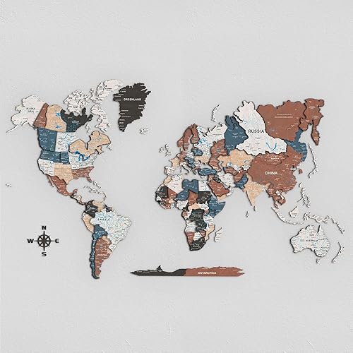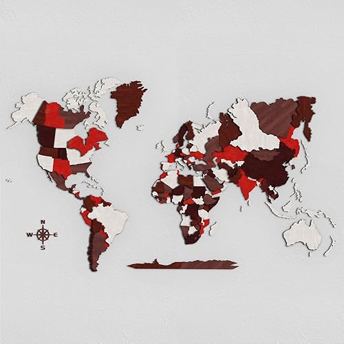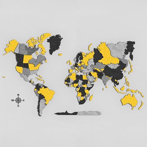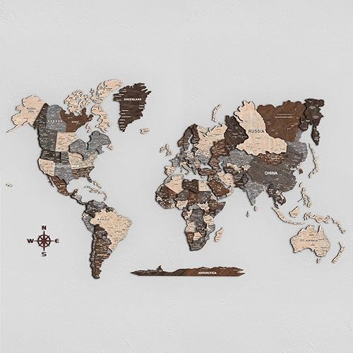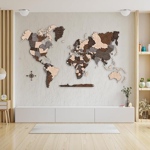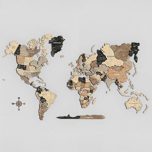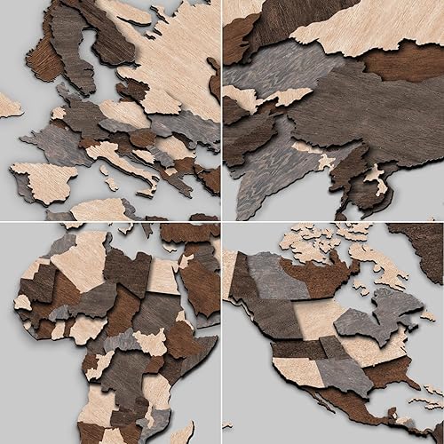 Giallobus - Carte du Monde 3D - Carte du Monde 3D - Bois MDF - Carte 3D - 190x108,5-02 - Natural Wood Overlay - Décoration Murale - Bois MDF Multiniveau - Salon Bureau Chambre