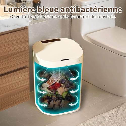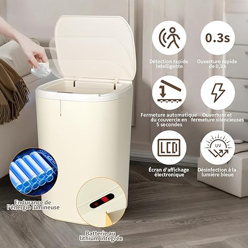 SternSinn Poubelle Salle Bain, Poubelle Electrique 20 L avec Capteur Automatique, 3 Modes avec Désinfection à la Lumière Bleue, Poubelle Intelligente Silencieux et étanche, pour Cuisine, Toilette