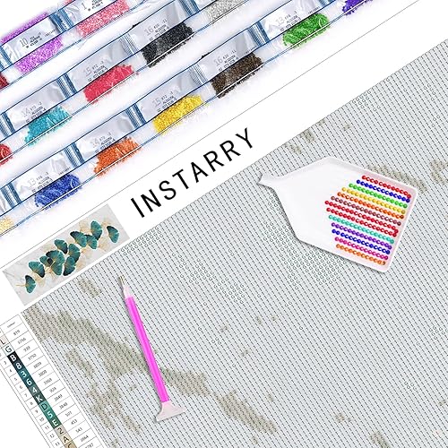 Instarry 5D Broderie Diamant Grand Format Ginkgo Biloba Vert Tableau Decoration Murale 120x40 cm