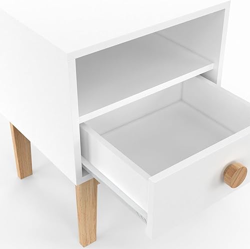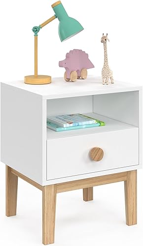 IDMarket - Table de Chevet Jacob Enfant 1 tiroir + 1 Niche Blanc et Bois