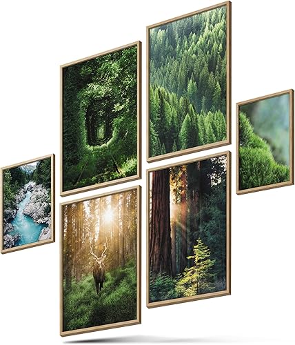 BLCKART Lot de posters Infinity Forest Dreamy Forest - Tableau mural imprimé des deux côtés - Poster de qualité supérieure - Décoration murale - Taille M 4 x A4 et 2 x A5