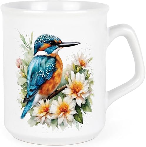 Tasse en céramique motif martin-pêcheur floral – Oiseaux et fleurs – Créatures – Cadeau sur le thème de la faune – Thé, café, boissons chaudes