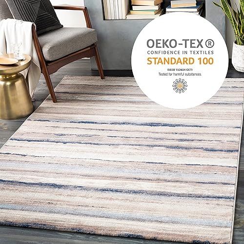 Livabliss Bruges Tapis Moderne Abstrait - Tapis Salon, Salle à Manger, Chambre Adulte et Ado, Cuisine - Design Marbre Moucheté Multicolore, Poil Ras Doux 120x170 cm - Gris, Bleu, Blanc Cassé