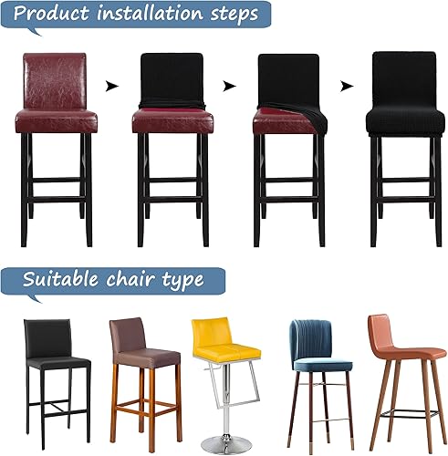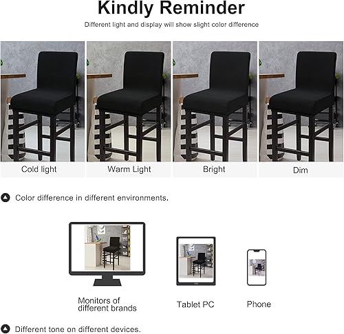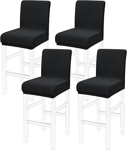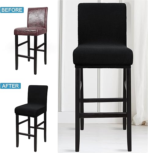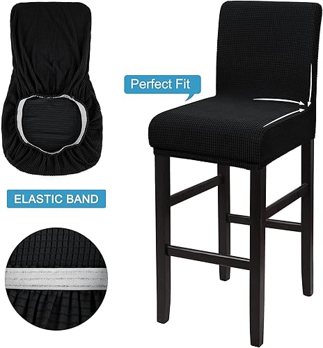 PICCOCASA Lot de 2 housses tabouret bar extensibles avec treillis carré Noir, 14' x 14' x 12'(L*W*H)