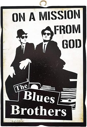 KUSTOM ART Tableau style vintage The Blues Brothers de collection imprimé sur bois 10 x 15 cm