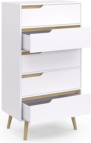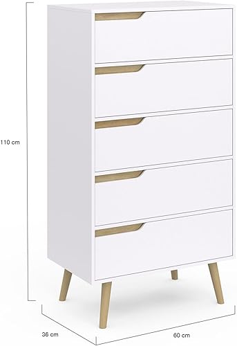 IDMarket - Chiffonnier 5 tiroirs Helsinki 60 cm Commode semainier scandinave Blanc