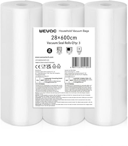 Wevac Lite Sac sous Vide Alimentaire 3 Rouleaux 28x600cm, Gaufrés Rouleau sous Vide sans BPA pour la Conservation des Aliments et Compatible avec n'importe Quelle Scelleuse