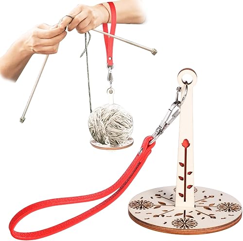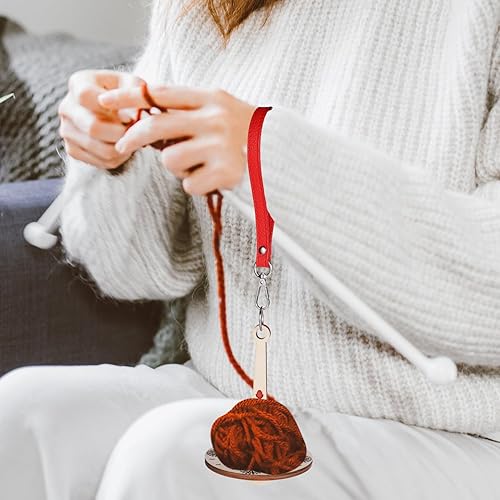 Porte-Fil de Poignet Portable, Mini Organisateur de Boules de Fil avec Bracelet en Cuir Support de Fil en Bois Fournitures de Tricot et de Crochet Cadeau pour les Amateurs d'Artisanat