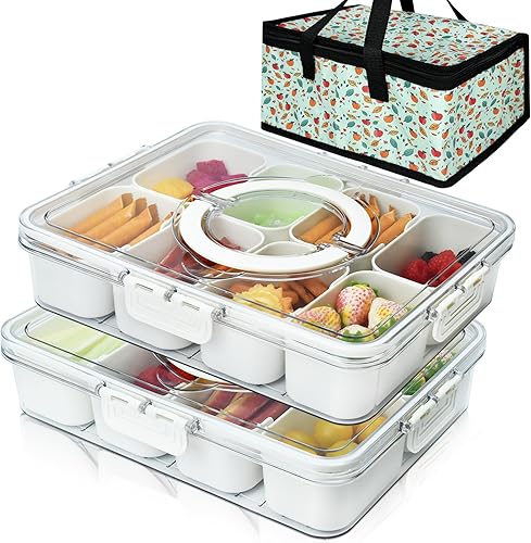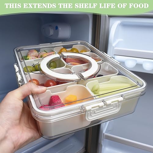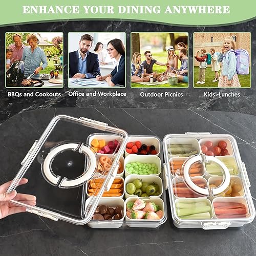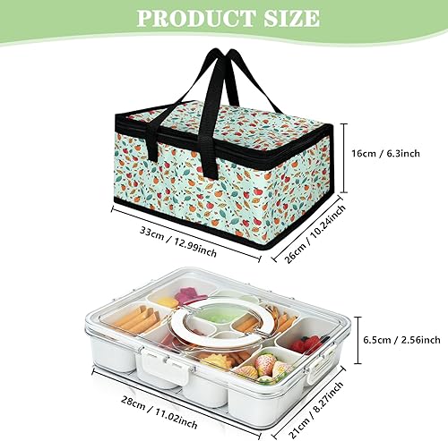 Artcome Plateau de service scellé avec poignée, 8 compartiments et sac de transport – Idéal pour organiser et transporter des collations et des apéritifs – Parfait pour les repas en plein air, les