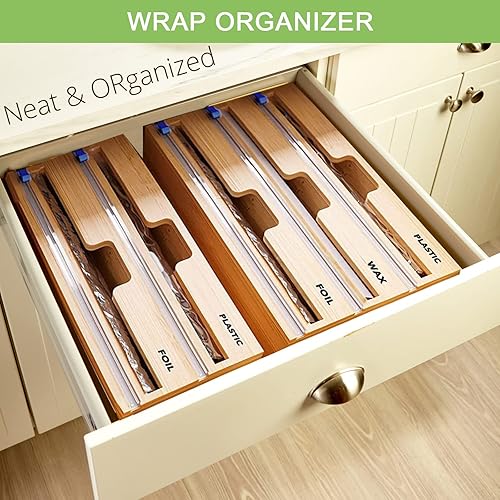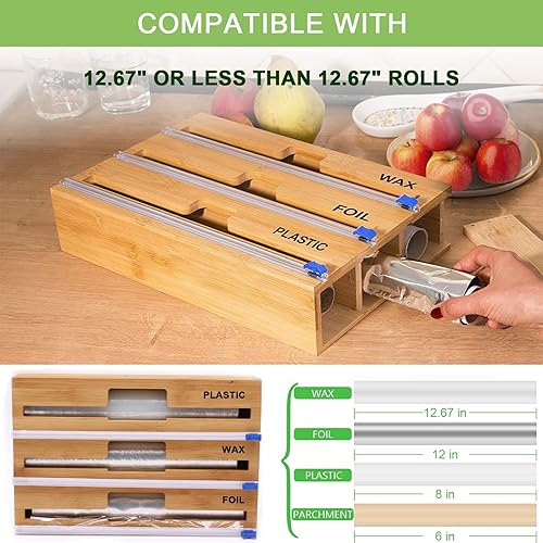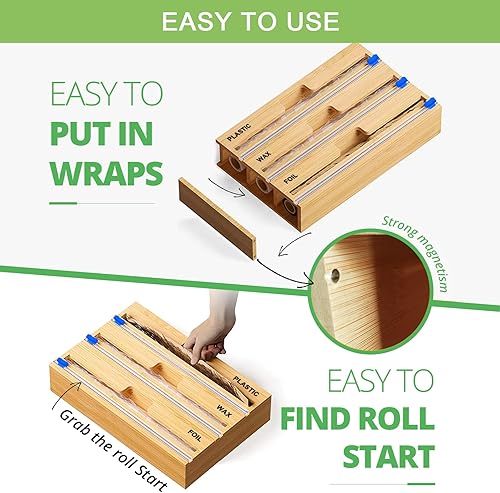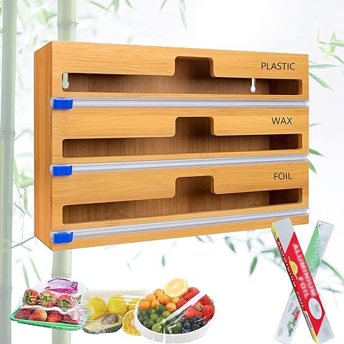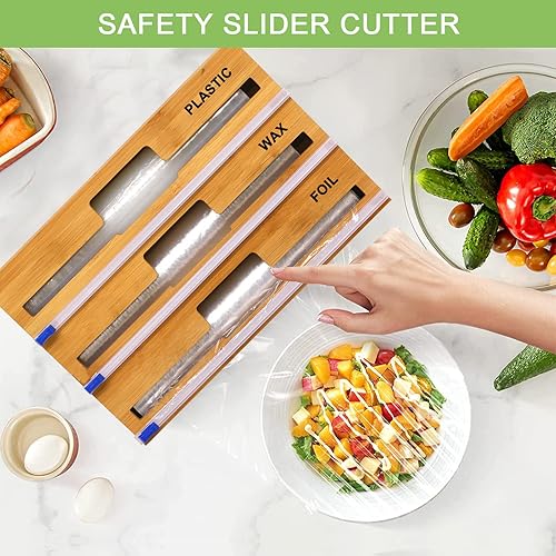 AOOGON Coupe-feuille 3 en 1 (comprend du papier d'aluminium et un film alimentaire),distributeur de feuille, papier plastique, papier d'aluminium et distributeur de papier ciré pour tiroirs de cuisine