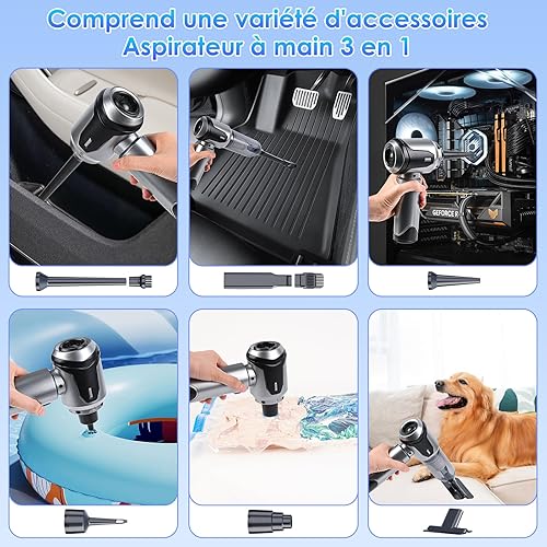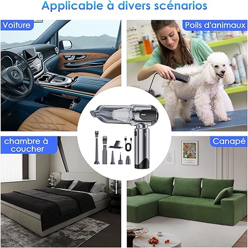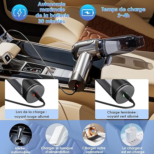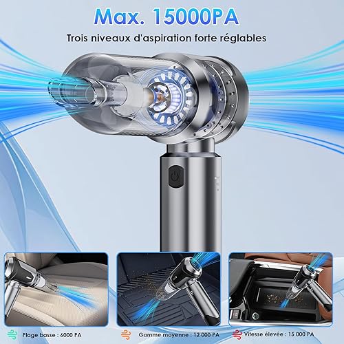 SternSinn Aspirateur à Main, 15000Pa 3 in 1 Aspirateur Voiture Puissant sans Fil, 3 Vitesses 100,000U/min avec Moteur sans Brosse, Mini Aspirateur de Voiture pour Voiture/Animaux/Maison/Bureau/Canapé