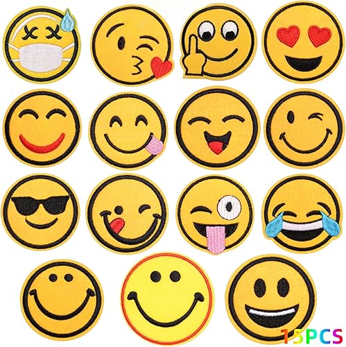 Lot de 15 écussons thermocollants à repasser, motif emoji, genouillères pour enfants, sacs à dos, jeans, etc