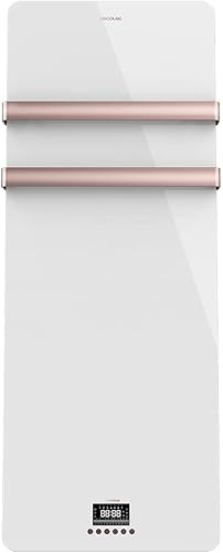 Cecotec Sèche-Serviettes électrique en Cristal Ready Warm 9870 Crystal Towel, 850 W, Deux Crochets en Acier Inoxydable, Minuterie, Télécommande, Écran LED (Blanc/Rose Acier) (Blanc/Rose Acier)