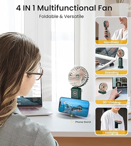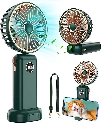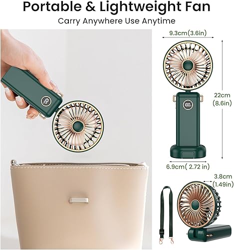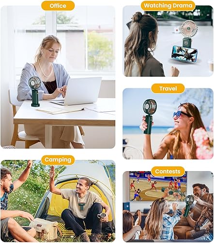 Ventilateur Portable, Mini Ventilateur avec 3 Vitesses, Petit Ventilateur Usb Rechargeable, Pliable avec Cordon et Base, Ventilateur de Poche pour Bureau, Voyages, Camping