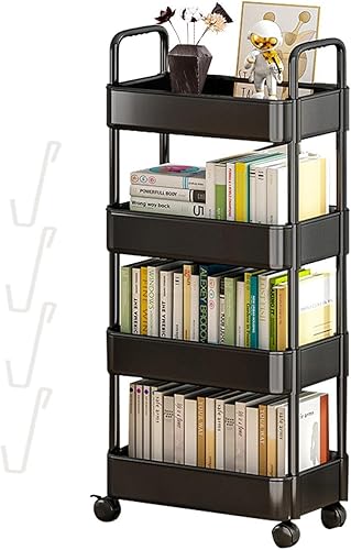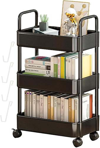 Baoqifong Chariot Utilitaire sur Roues | Organisateur de Chariot de Rangement pour Chariot Utilitaire | Étagère roulante à 3/4 Niveaux avec Roues et Crochets, Chariot de Rangement pour Cuisine,
